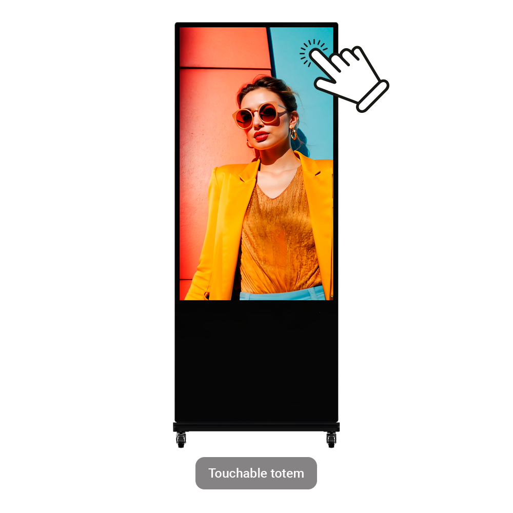 Totem táctil con monitor 55" – Uso en interiores – Resolución 4K – Uso intensivo 24/7 – Android 13 – 4 GB RAM + 32 GB ROM
