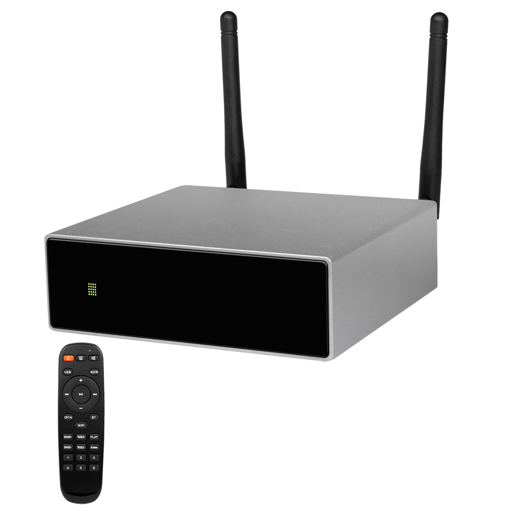 Amplificador reproductor – 2 x 60W – Conexión Bluetooth – Reproducción USB – Presets de ecualización – Mando a distancia