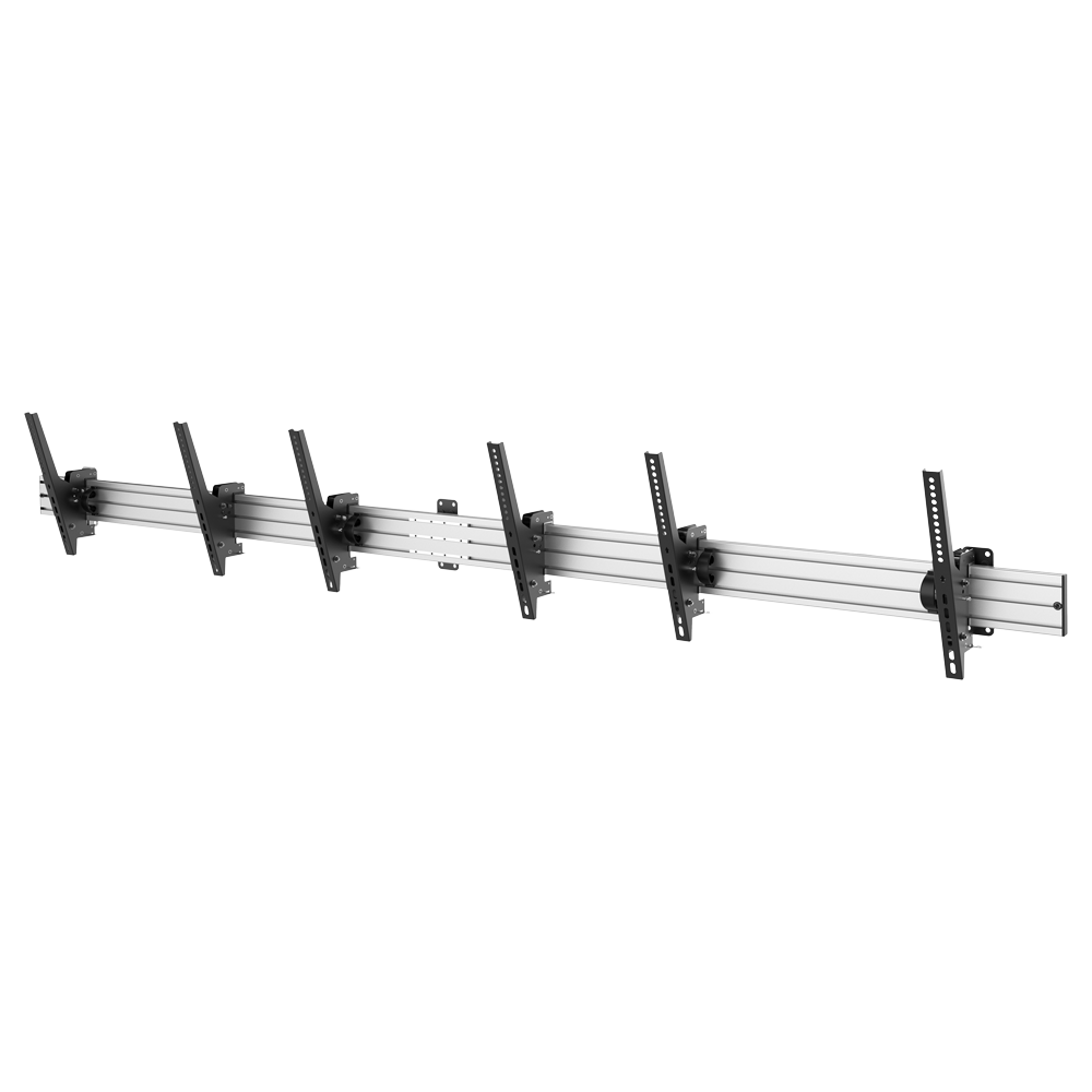 Soporte Menuboard – Peso soportado 50 Kg/monitor – VESA 600×400 mm/monitor – Inclinación 0º ~ -20º – Distancia a la pared 100 mm – Disposición 3×1