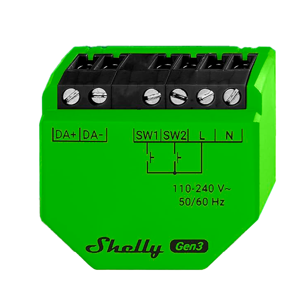 Shelly 2PM Gen3 – WiFi 2.4 GHz IEEE802.11 b/g/n / Bluetooth – Interruptor inteligente – Soporta 110-240 V / 24V – Controlador de persianas – Compatible con Alexa y Google