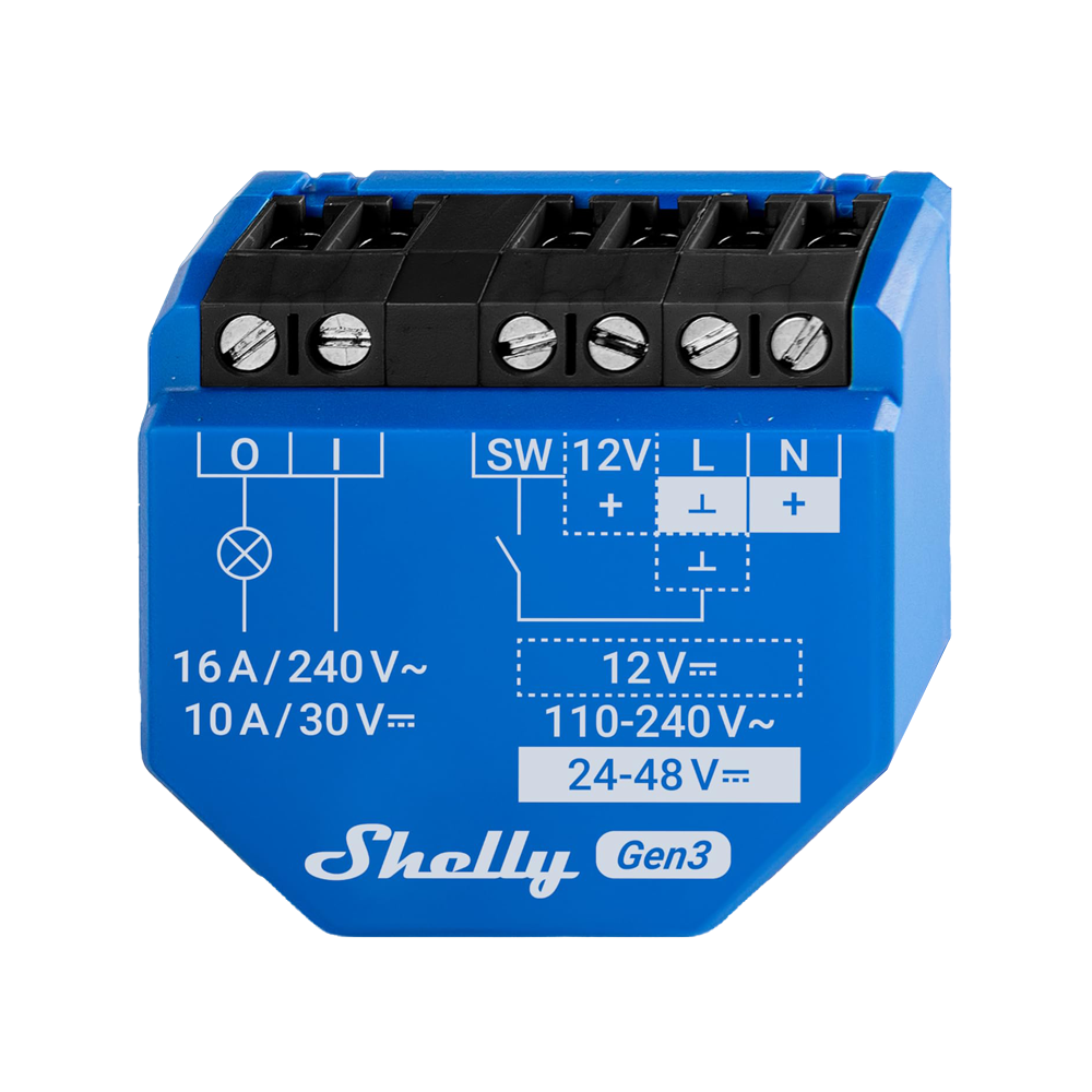 Shelly 1 Gen3 – WiFi 2.4 GHz IEEE802.11 b/g/n / Bluetooth – Interruptor inteligente – Soporta 110-240 V~24-48 V⎓12 V⎓ – Ofrece contactos secos – Compatible con Alexa y Google