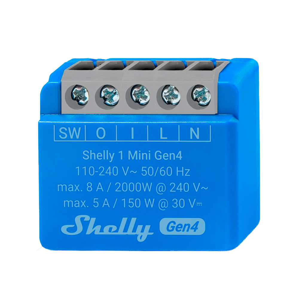 Shelly 1 Mini Gen3 – WiFi 2.4 GHz IEEE802.11 b/g/n / Bluetooth – Interruptor inteligente – Soporta alimentación AC – Ofrece contactos secos – Compatible con Alexa y Google