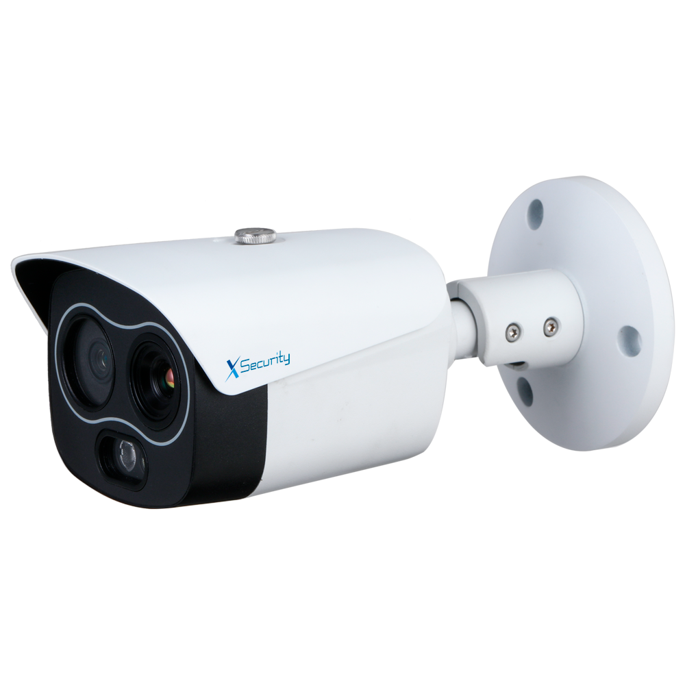 Cámara térmica Dual IP X-Security – 256×192 VOx | Lente 7 mm – Sensor óptico 1/2.7” 4 Mpx | Lente 8 mm – Sensibilidad térmica ≤40mK – Detección de incendios y alarma – Audio | Alarmas | MicroSD | PoE