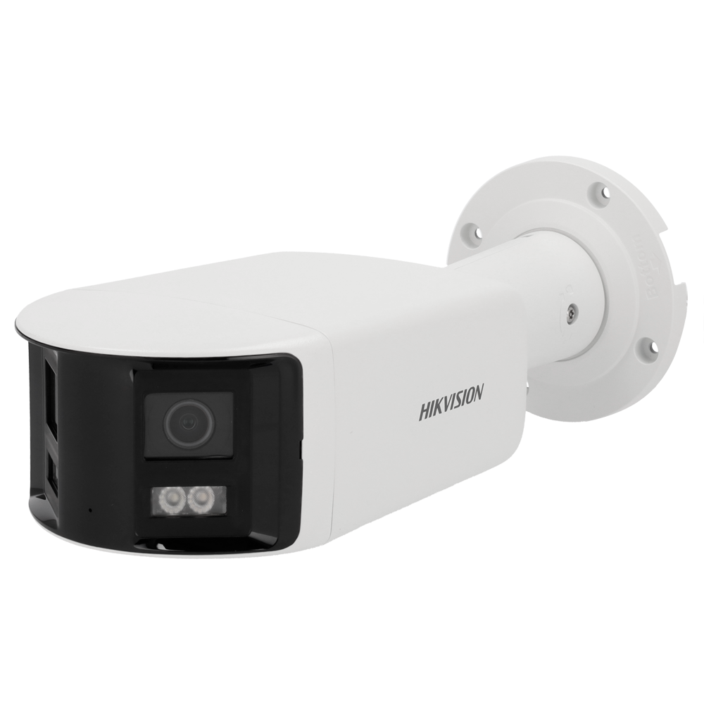 Hikvision – Cámara Panorámica Bullet IP gama PRO – Resolución 6 Megapíxel (3632×1632) – Lente 2.8 mm | ColorVu | Micrófono y altavoz – Luz blanca 40 m | Sirena y flash disuasorio – Detección de movimiento 2.0 | AcuSense