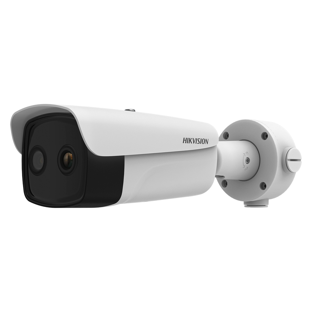 Cámara térmica Dual IP Hikvision Gama PRO – Sensor térmico 384×288 VOx | Lente 7.6mm – Sensor óptico 1/2.7” 4Mpx | Lente 4.3mm – Sensibilidad térmica ≤20mK (25°C, F1.0) – Detección de preventiva de incendios y alarma – Rango medición temp -20~150ºC / ±8ºC