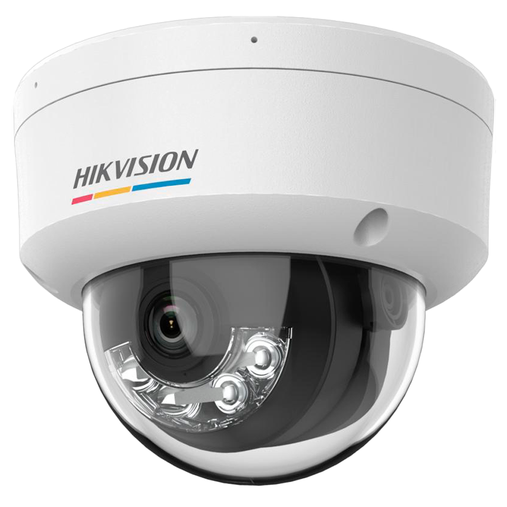 Hikvision cámara IP Domo gama VALUE ColorVu3.0 – Resolución 4 MPx | PoE IEEE802.3af – ColorVu3.0: imagen a color HikAI-ISP F1.0 1/1.8" – 2.8 mm | Micrófono | Luz híbrida hasta 30m – Detección de movimiento 3.0 – IP67 | IK08