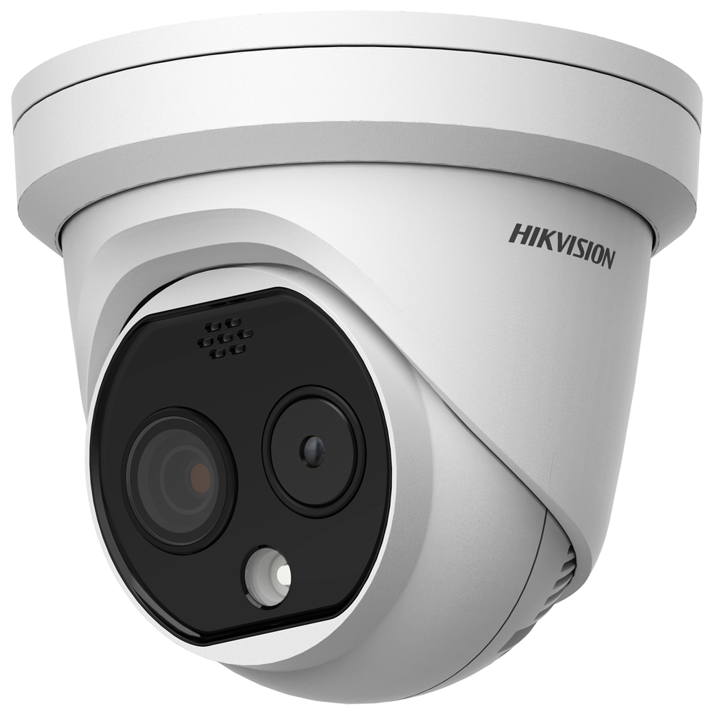Cámara térmica Dual IP Hikvision Gama PRO – Sensor térmico 256×192 VOx | Lente 3.6 mm – Sensor óptico 1/2.7” 4 Mpx | Lente 4.3 mm – Sensibilidad térmica ≤ 40mK – Detección de preventiva de incendios y alarma – Rango medición temp -20~150ºC / ± 8ºC
