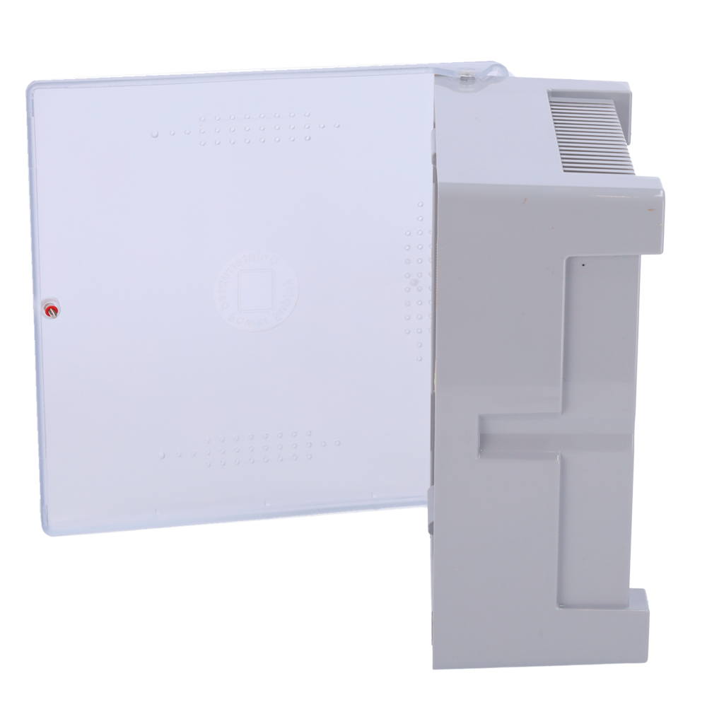 Alimentador para control de acceso – Configurable NO/NC – Salida DC 12.5-13.8V / 5A – Caja de plástico – Apto para batería auxiliar 12V / 7Ah – Montaje en superficie