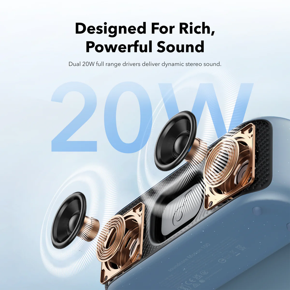 Altavoz portátil Soundcore by Anker – 2 diafragmas estereo – Sonido de 20W – 12 Horas de Reproducción – Frecuencia del sonido 50Hz~40 KHz – Impermeable IPX7 | Color azul