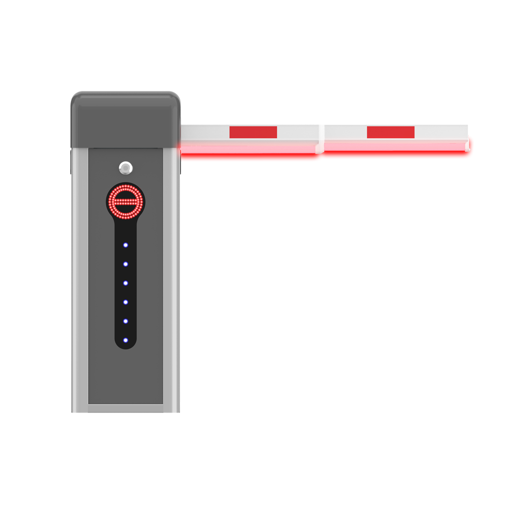 Barrera de parking de alto rendimiento – Brazo recto (hasta 6 m) – Apertura a izquierdas | 10.000.000 ciclos – Indicadores LED | Modo de emergencia – Posibilidad de batería de respaldo – Apta para exterior IP54