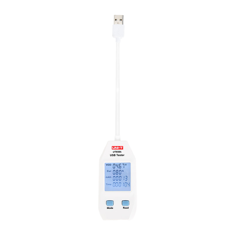 Medidor de corriente y tensión UNI-T – Sencilla conexión USB Tipo A – Permite conocer la tensión y la corriente del dispositivo alimentado – Tensión de entrada 4~24V DC – Corriente máxima 3A – Pantalla de visualización LCD