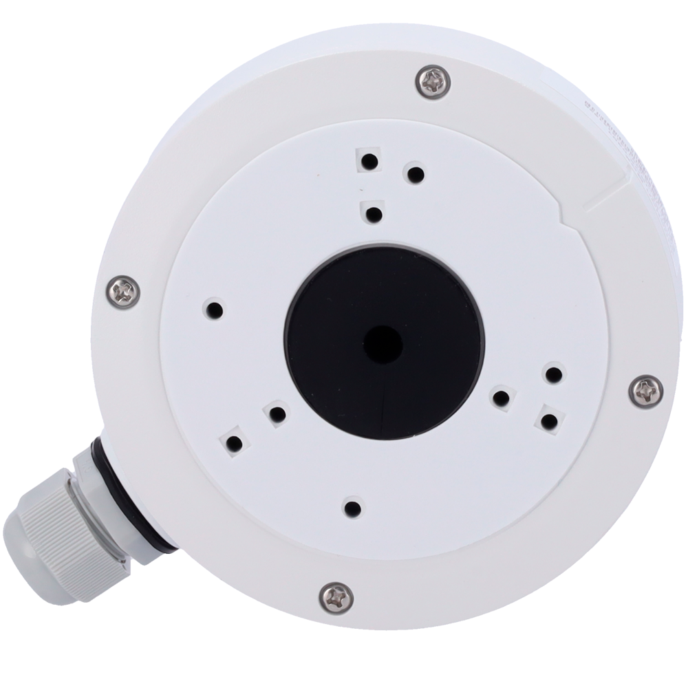 Caja de conexiones – Para cámaras domo – Doble sellado para exterior – Nivel de agua para correcto posicionamiento – Imán interior para fijar tornillos – Fabricada en plástico | Color blanco