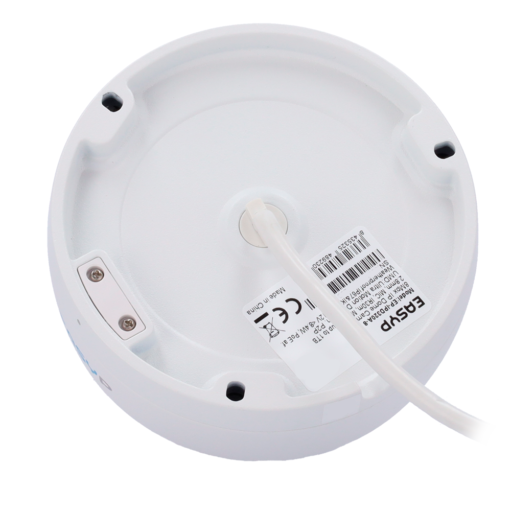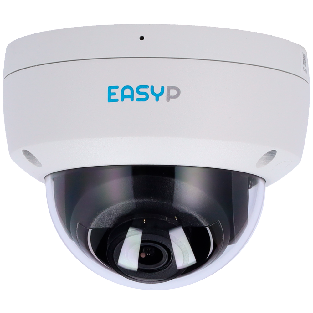 Cámara Domo IP AI EASY-P – 8MP | Lente 2.8 mm – IR 30 m | Mic – Instalación Plug & Play – Soporta UMD y Motion Detect 2.0 – IP67 | PoE | IK10 | P2P | Metal