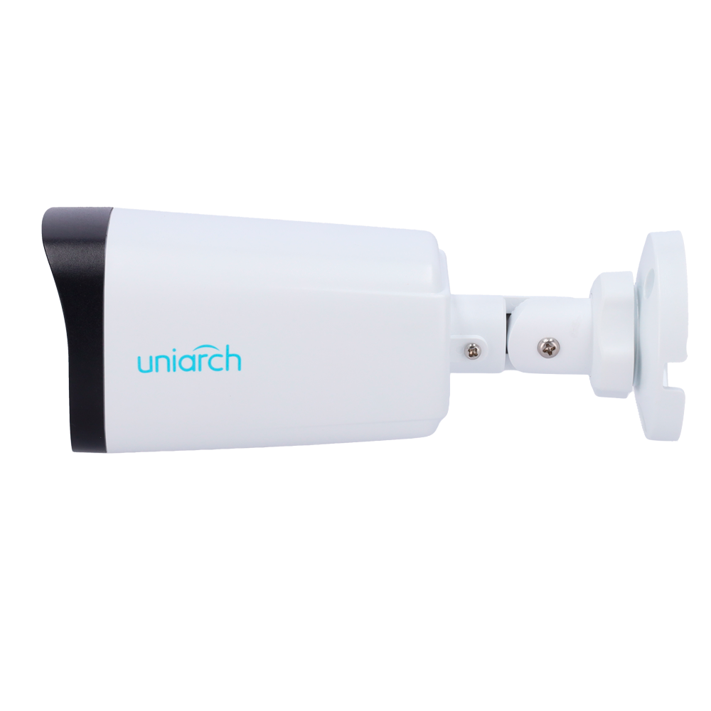 Cámara IP Uniarch tipo Bullet de 2 MP con lente fija de 2.8 mm, cuenta con tecnología Color Hunter con Wise-ISP para imágenes a color en cualquier entorno y UMD. Apta para instalar en exterior, gracias a su protección IP67 e iluminación blanca con alcance de hasta 30 m.