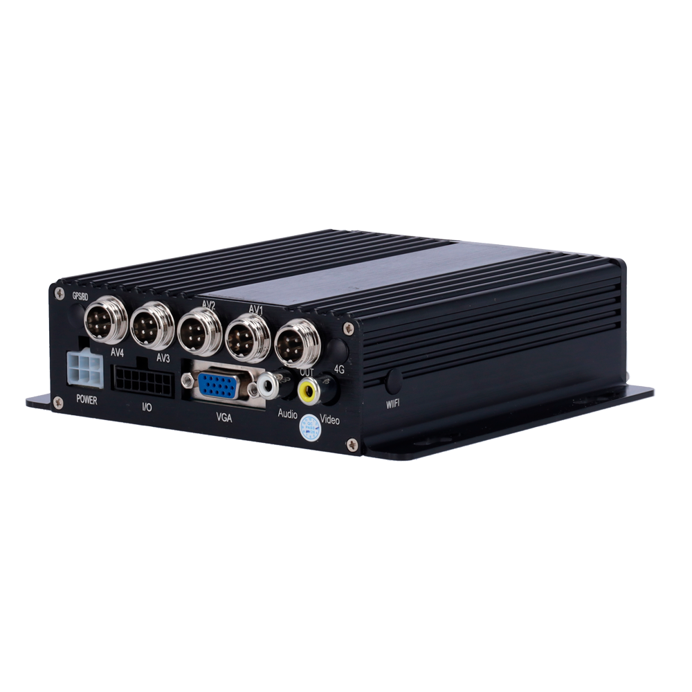 MDVR básico 4 canales AHD 1080P – Grabación en tarjeta SD – Conectores M12 4 pines – 4 entradas de alarma y 2 salidas