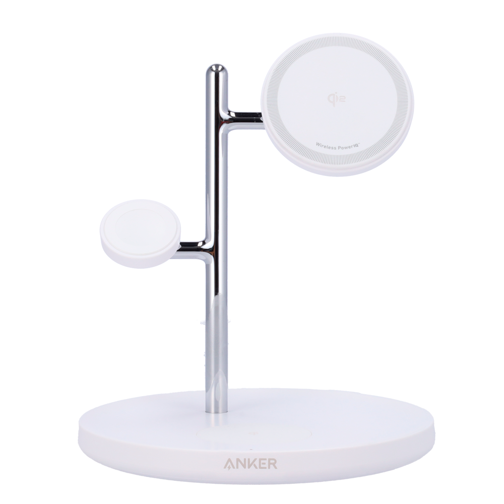 Cargador inalámbrico 3 en 1 Anker – Tecnología MagGo – Carga rápida: iPhone, Airpods, Apple Watch – Carga 3 dispositivos a la vez – Carga rápida 25W – Estructura plana | Color blanco