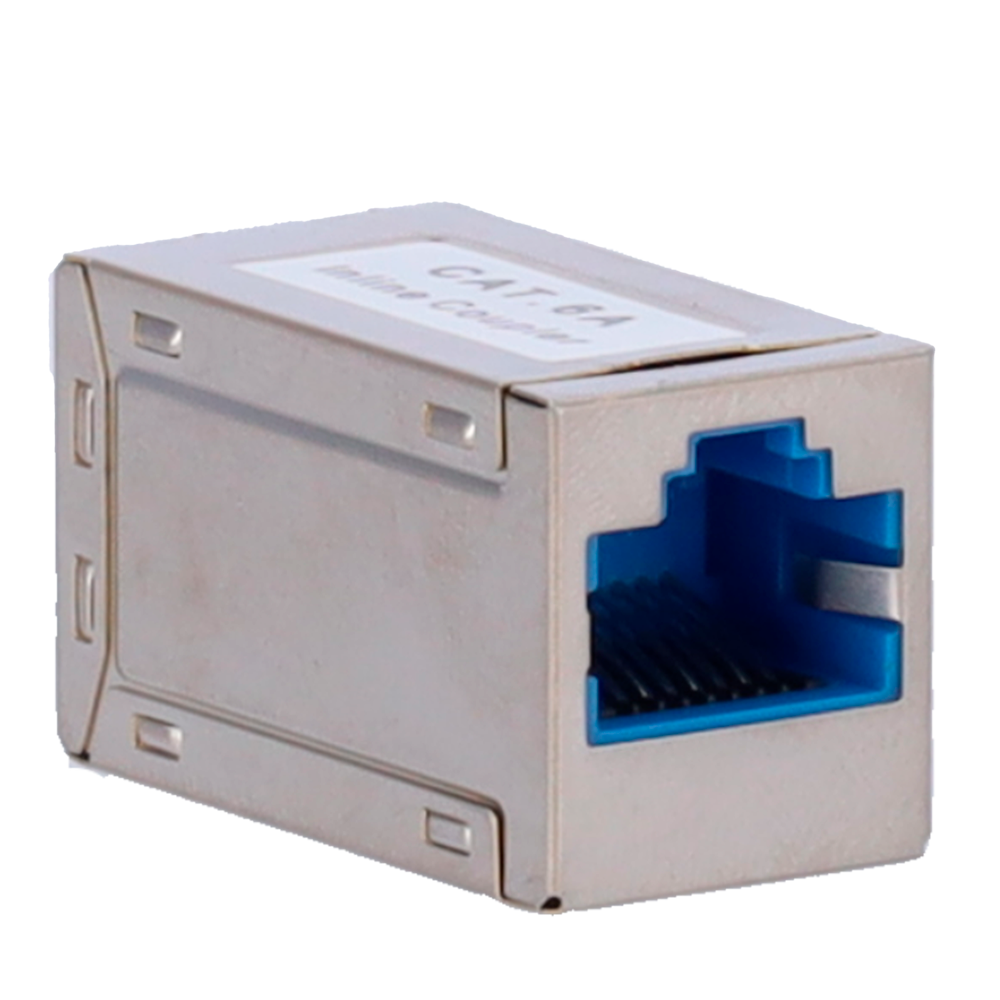 Conector para empalme de cables RJ45. Permite extender la longitud de dos cables UTP categoría 6A, con sólo conectarlos, de una forma rápida y sencilla. Designado para proporcionar conexión hembra-hembra.