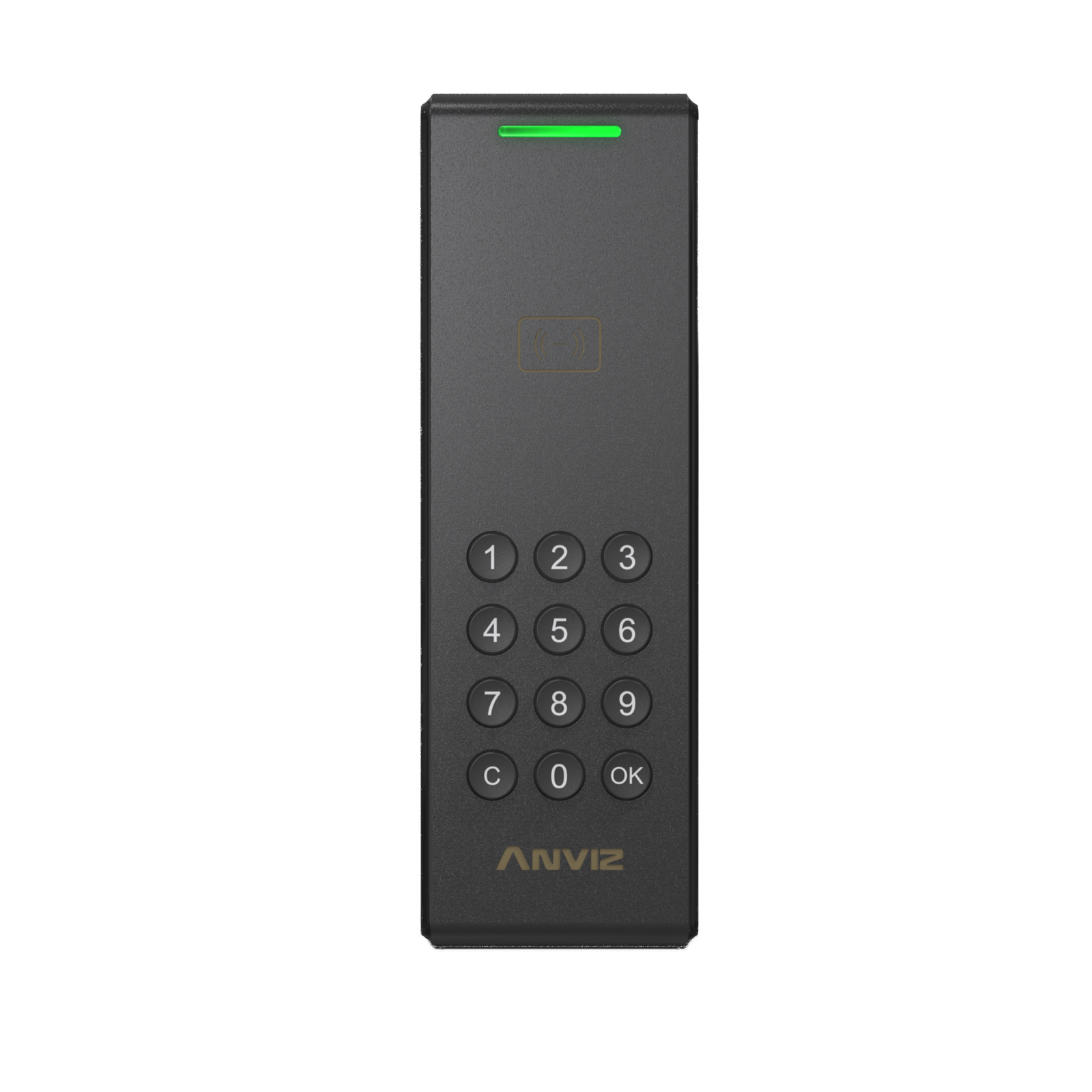 Lector de acceso – Acceso por tarjeta EM/MF y PIN – Indicador LED y acústico – Wiegand 26/34 | OSDP – Compatible con controladoras Anviz – Apto para exterior IP65