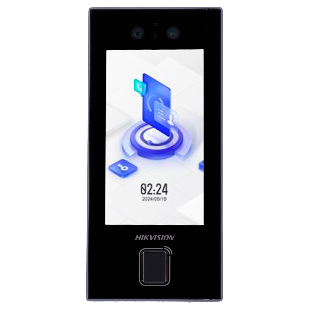 Control de acceso y presencia PoE IP65 – Facial, huella, tarjeta MF, QR y PIN – 3.000 usuarios | 150.000 registros – TCP/IP, WiFi, USB, RS485 y Wiegand – 4.5" TFT táctil | Controladora integrada – iVMS-4200 | Hik-Connect