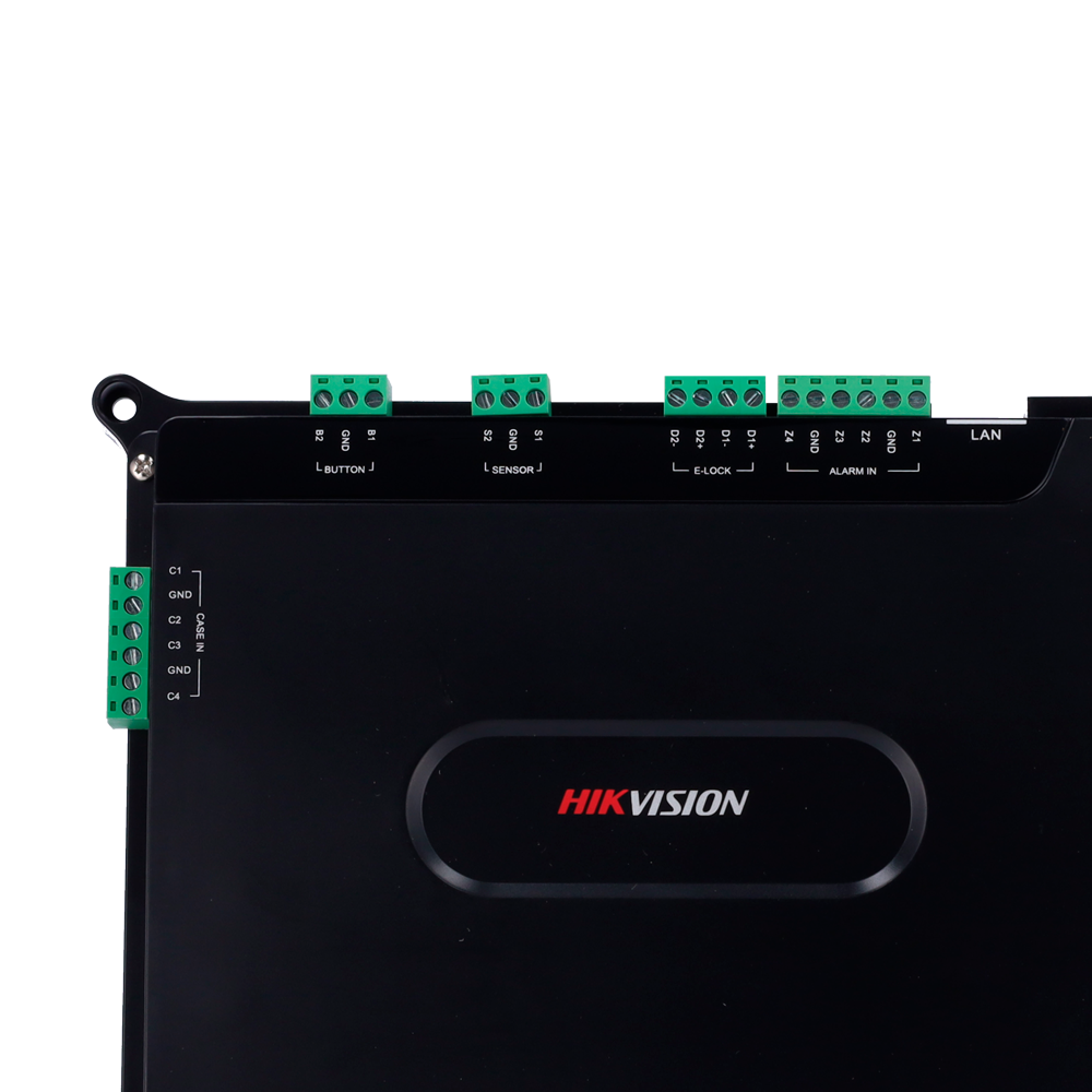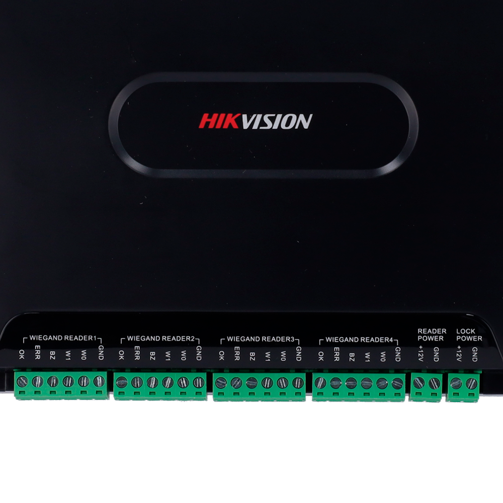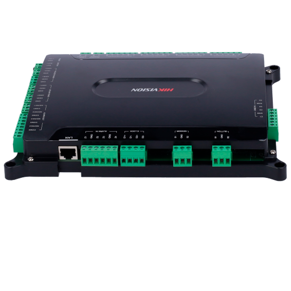 Controladora de acceso Multi-identificación – Facial, huella, tarjeta, QR o PIN – 2 puertas | Comunicación TCP/IP y RS485 – 4 lectores por Wiegand | 4 lectores por OSDP – Sin caja – Software iVMS-4200