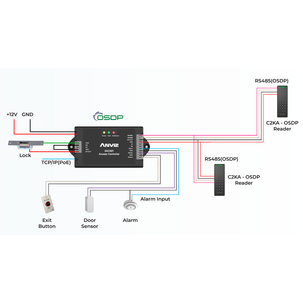 Lector de acceso – Acceso por tarjeta EM/MF y PIN – Indicador LED y acústico – Wiegand 26/34 | OSDP – Compatible con controladoras Anviz – Apto para exterior IP65