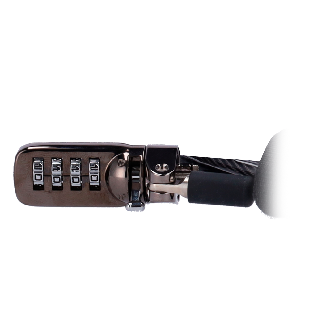 Cordón antihurto EAS – Apto para portátiles – Apertura con código de 4 dígitos – Dimensiones cerradura: 5 (An) x 7 (Al) mm – Longitud cordón: 200 mm – Fabricado en acero y aluminio