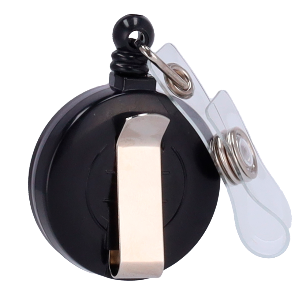 Cordón retráctil para porta-tarjetas – Disposición en forma de clip – Compatible con CARD-HOLDER-X-XXX – Tamaño reducido – Fabricado en plástico – Color negro