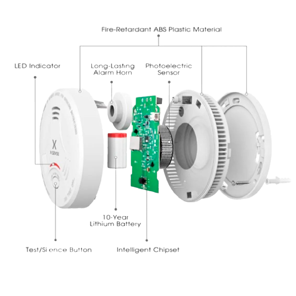 Detector de humo autónomo X-Sense – Duración de la batería 10 años – Indicador luminoso de alarma – Alarma sonora 85 dB a 3m – Botón de Test – Certificado EN 14604