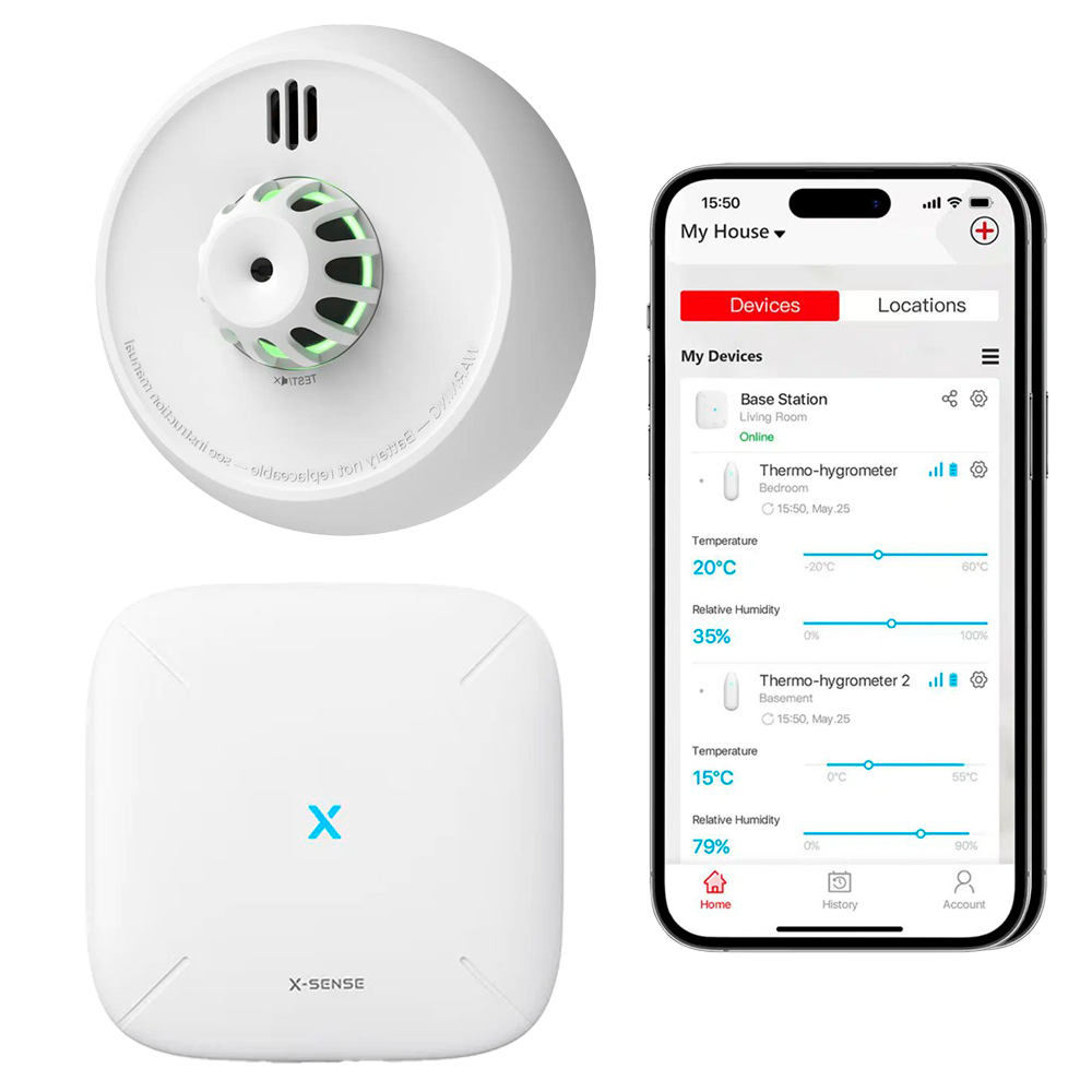 Kit de detección de incendio autónomo X-Sense – Inlcuye 3 detectores de humo XS01-M y Hub SBS50 – Conexión con HUB SBS50 para comunicación por APP – Permite conectar 50 detectores en la misma red – Alarma sonora 85 dB a 3m – Certificado EN 14604