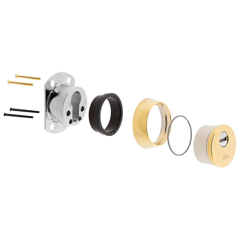 Escudo de alta seguridad Nexus – Anti-rotura, extracción, taladro y mordaza – Núcleo de acero macizo – Incrustaciones de bolas de acero – Sujeción con 4 tornillos – Color dorado