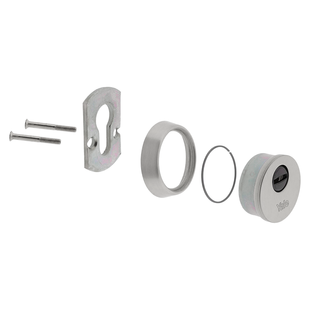 Escudo de seguridad M5 – Anti-rotura, extracción, taladro y mordaza – Núcleo de dos placas de acero – Sujeción con 2 tornillos – Color plateado