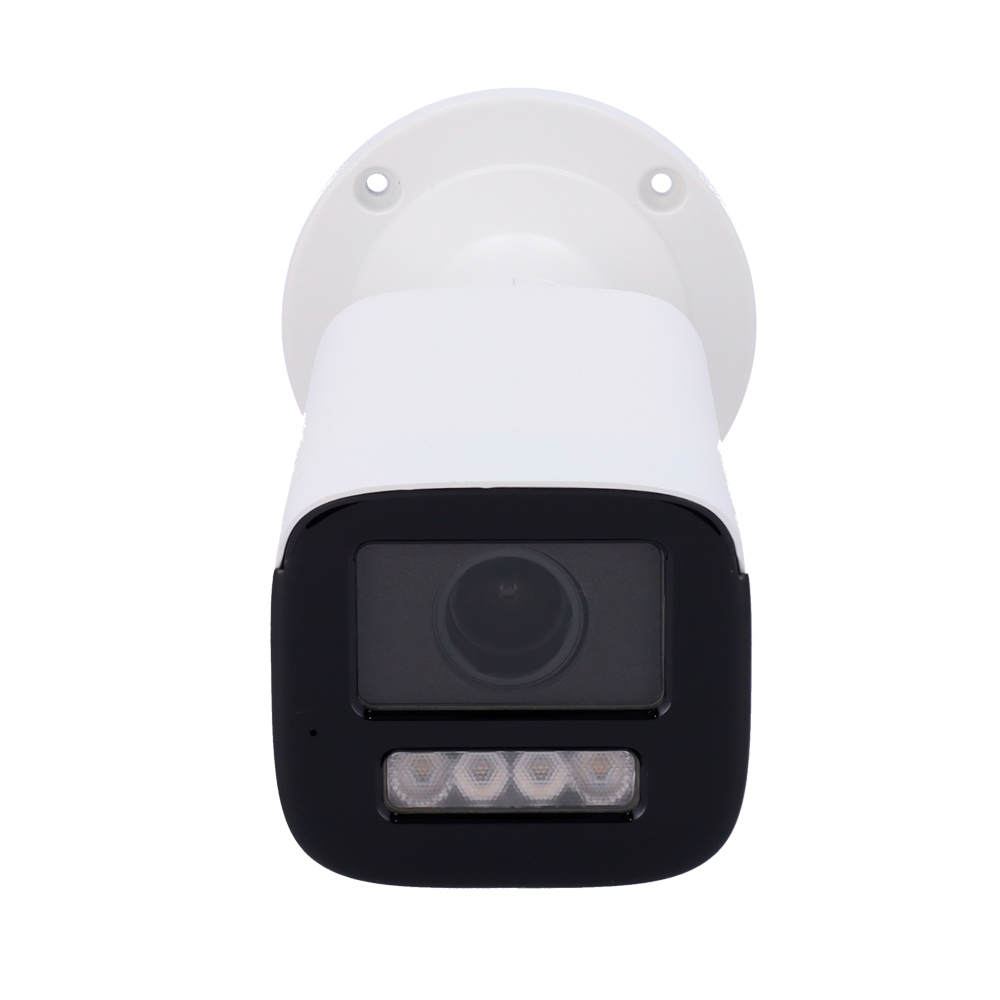 Hikvision cámara Bullet 4en1 Gama Value – Resolución 2K (2304×1296) – Lente 2.8 mm – Luz hibrida (IR 40 m, luz blanca 40 m) – Audio sobre cable coaxial | Micrófono integrado – Impermeable IP67 | Metal y plástico