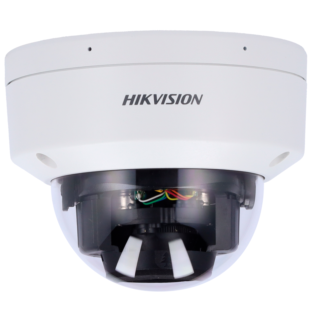 Hikvision – Cámara Domo IP gama PRO – Resolución 4 Megapíxel (2688×1520) – Lente 2.8~12 mm | MicroSD | IP67, IK10 – Luz híbrida alcance 40 m | Micrófono en array – AcuSense | MD 2.0 | Alarmas | Audio | PoE