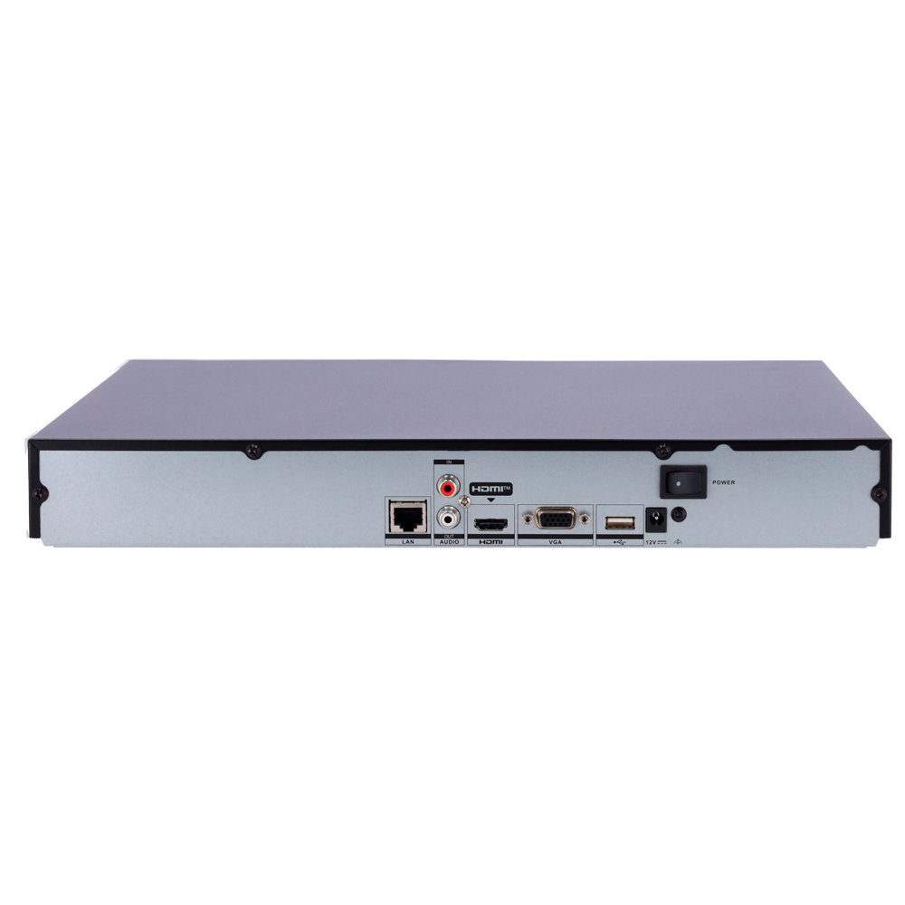 Grabador NVR – 8 canales – Compresión H.265 / H.264 – Resolución hasta 4K (25/30 FPS) – Ancho de banda 100Mbps – Espacio para 1HDD de hasta 16 TB
