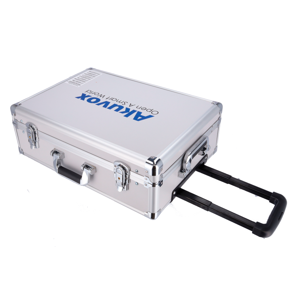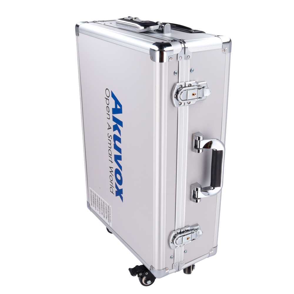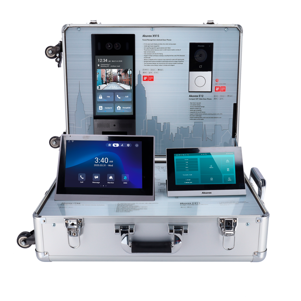 Maletín de exposición – Videoporteros Akuvox – Router WiFi y switch PoE – Licencia grauita Akuvox Cloud Services – Plug & Play – Maletín: 540 (Al) x 386 (An) x 178 (Fo) mm