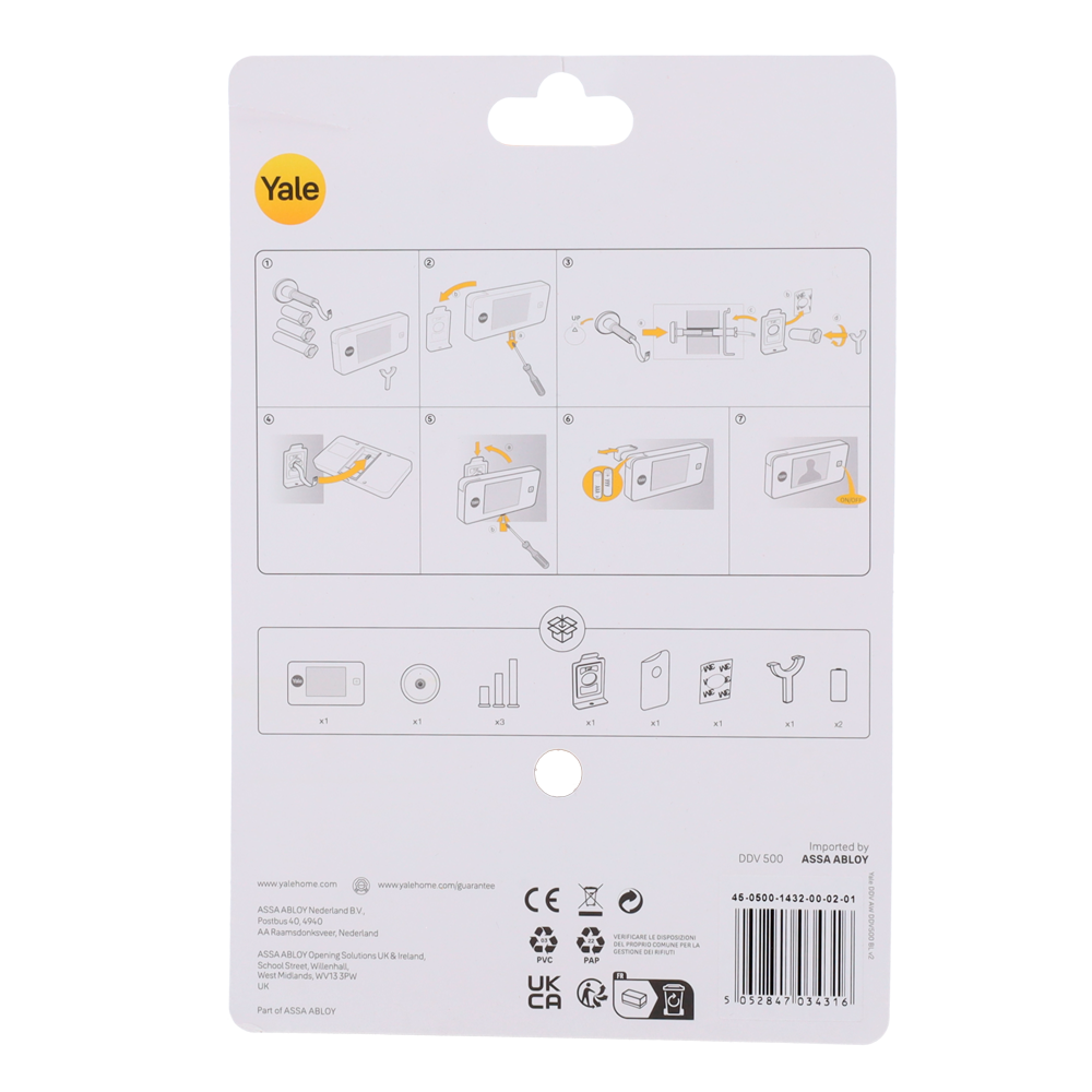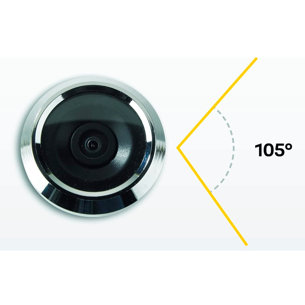Mirilla digital – Cámara 0.3 Mpx | Ángulo de visión 105º – Pantalla LCD TFT 3.2" – Puertas con espesor entre 38 y 110 mm – Alimentación con baterías AAA – Color plata