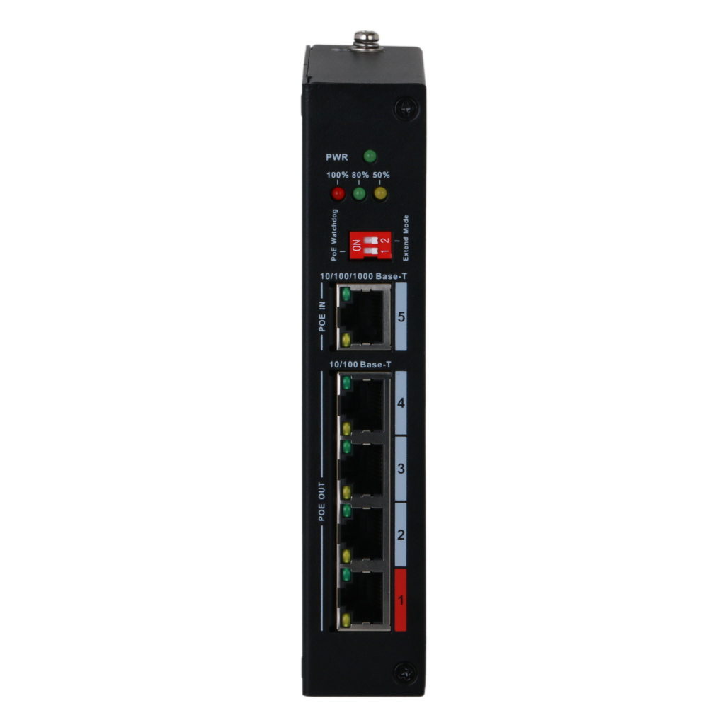 Dahua – Extensor PoE – Permite ampliar el alcance de la alimentación POE – Velocidad 4x 10/100Mbps + 1x 10/100/1000Mbps – 4 Puertos PoE Out FE + 1 Puerto PoE In GE – 3x Puertos PoE+ 802.3af/at + 1 Puerto Hi-PoE