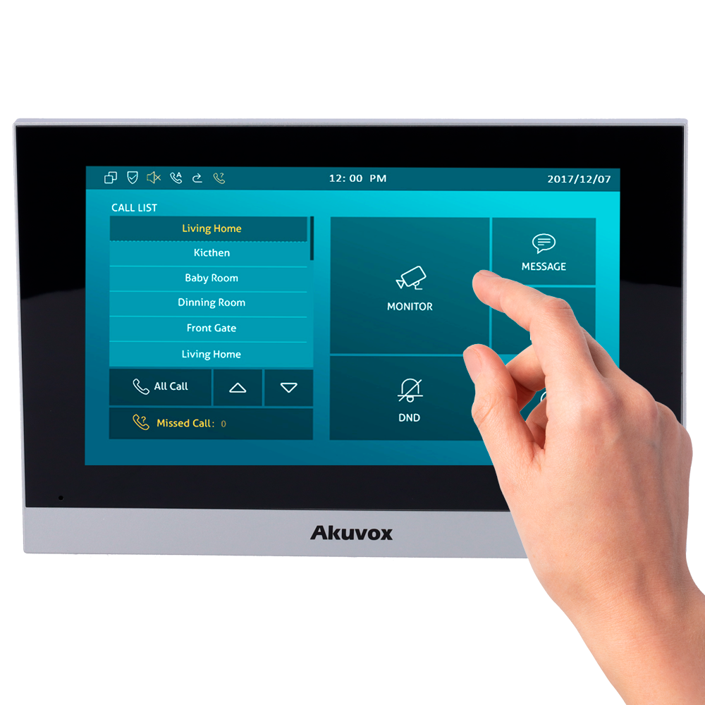 Monitor Linux para videoportero – Pantalla TFT de 7" – Audio bidireccional Crystal Clear – 2 hilos LP, WiFi, SIP estándar – Configuración local Plug & Play – Conexión y mantenimiento a través de Cloud