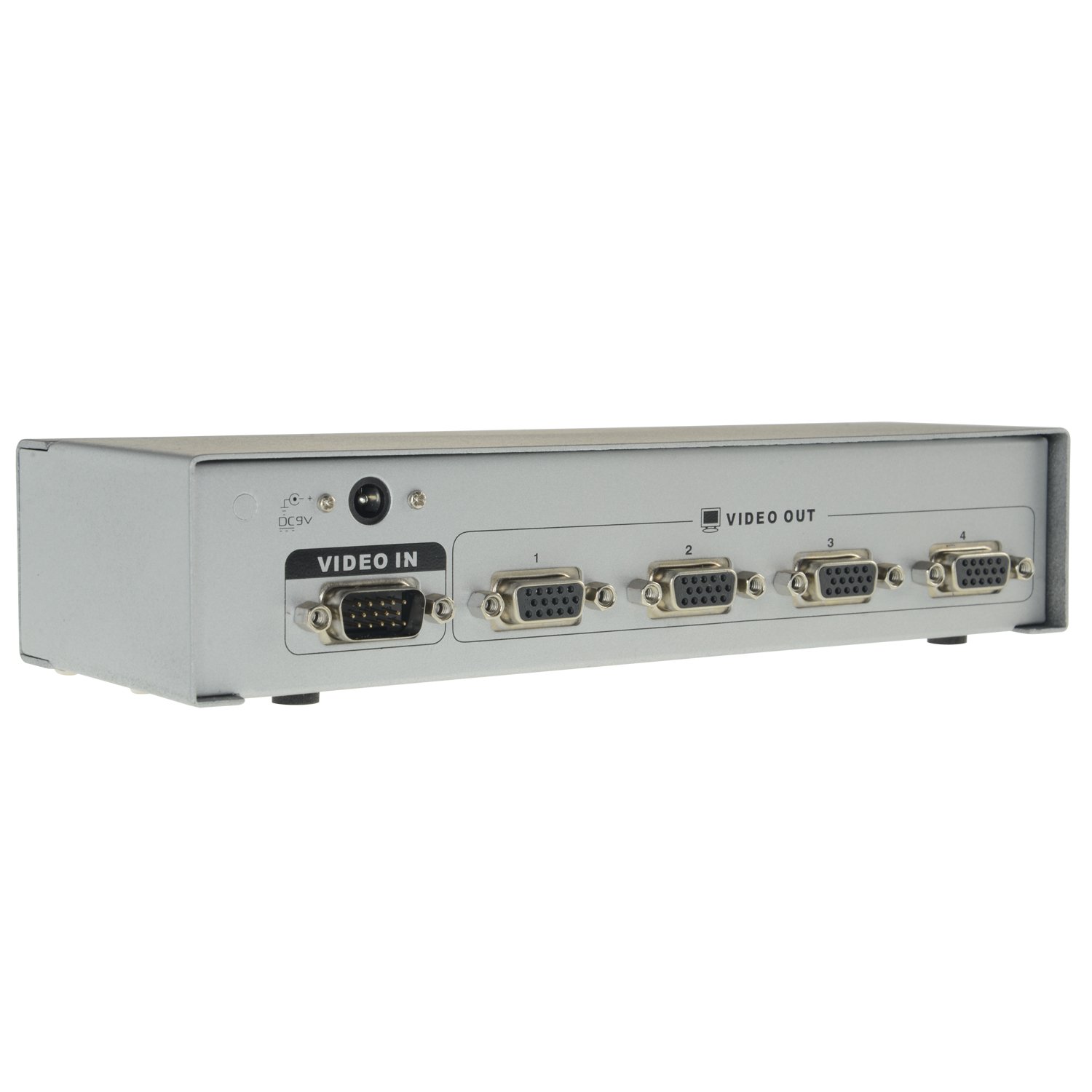 Multiplicador de señal VGA – 1 entrada VGA – 4 salidas VGA – VGA, SVGA, XGA, Multisync – Distancia máxima a monitores: 65 metros – Alimentación DC 9 V