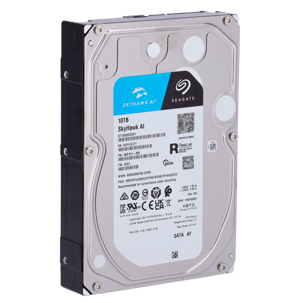 Pack de discos duros Seagate – 10 unidades – Capacidad 10 TB – Modelo Skyhawk AI ST10000VE001 – Interfaz SATA 6 Gb/s – Diseñado para sistemas NVR con IA