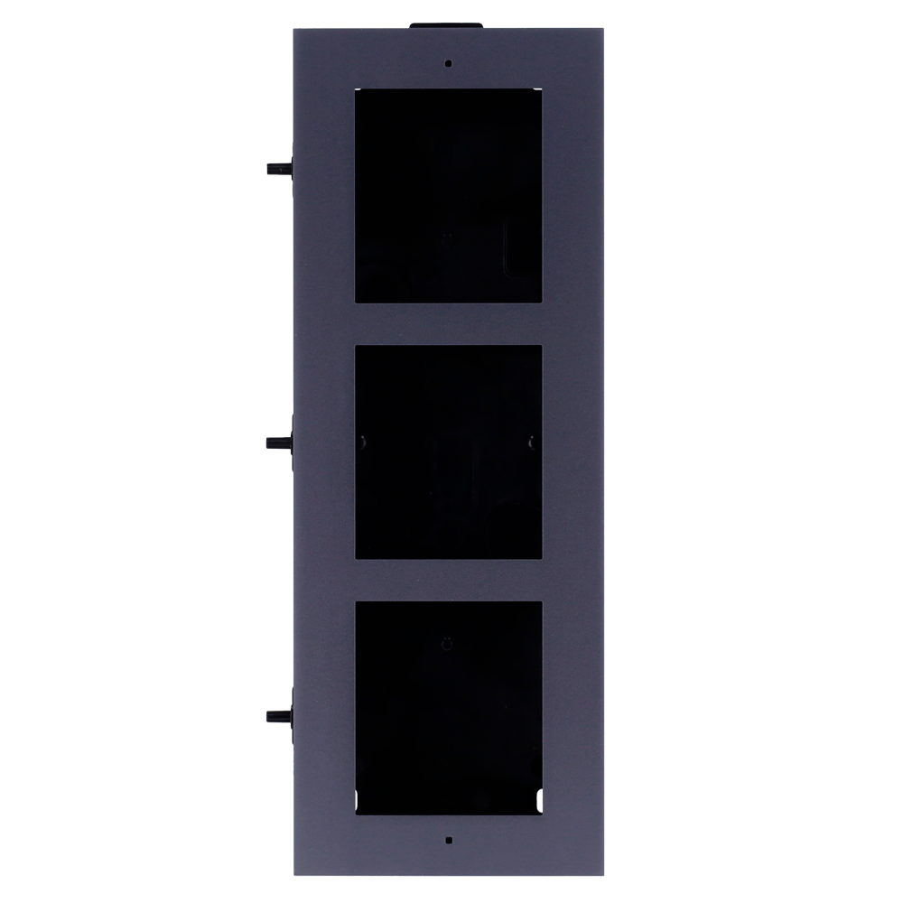 Panel frontal y caja de registro encastrada – Hasta 3 módulos – Específica para videoporteros Hikvision – Compatible con módulos Hikvision – Caja fabricado en plástico – Panel fabricado en aluminio de aviación