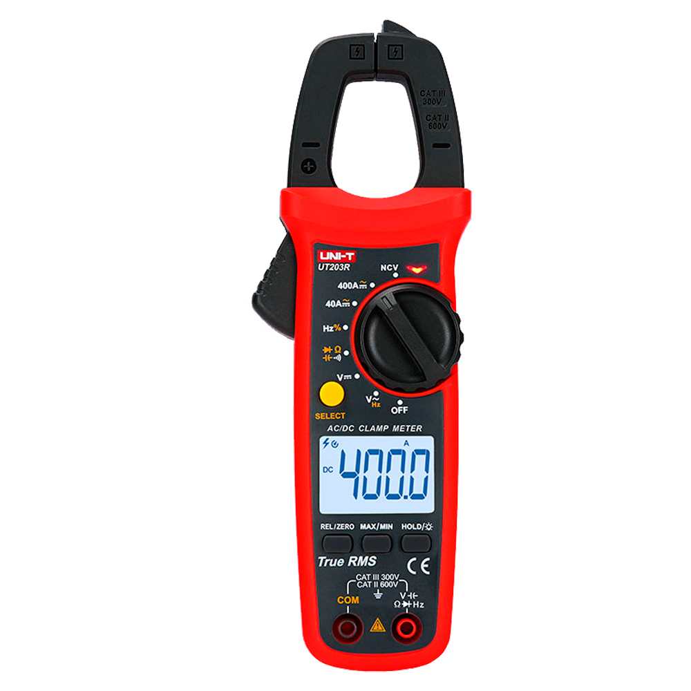Pinza amperimétrica – Medición en DC hasta 600V y 400A – Medición en AC hasta 600V y 400A – Capacitancia/frecuencia – Auto Rango | Test diodos| True RMS | NVC – Apertura de pinza de 28mm
