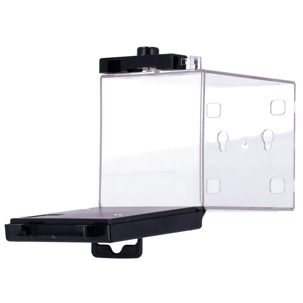 Protección electrónica antihurto EAS – AM 58 kHz | Desbloqueo magnético – Caja transparente de policarbonato – Medidas int.: 110 (An) x 125 (Al) x 36 (Fo) mm – Medidas ext.: 117 (An) x 85 (Al) x 33 (Fo) mm – Compatible con antenas AM