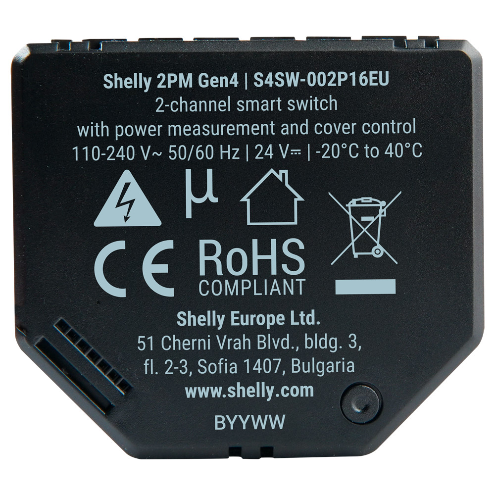 Relé Shelly 2PM Gen4 – WiFi 2.4 GHz / Bluetooth / Zigbee – Interruptor inteligente – Soporta 110-240 V / 24V – Controlador de persianas – Compatible con Alexa y Google