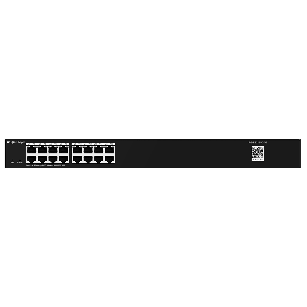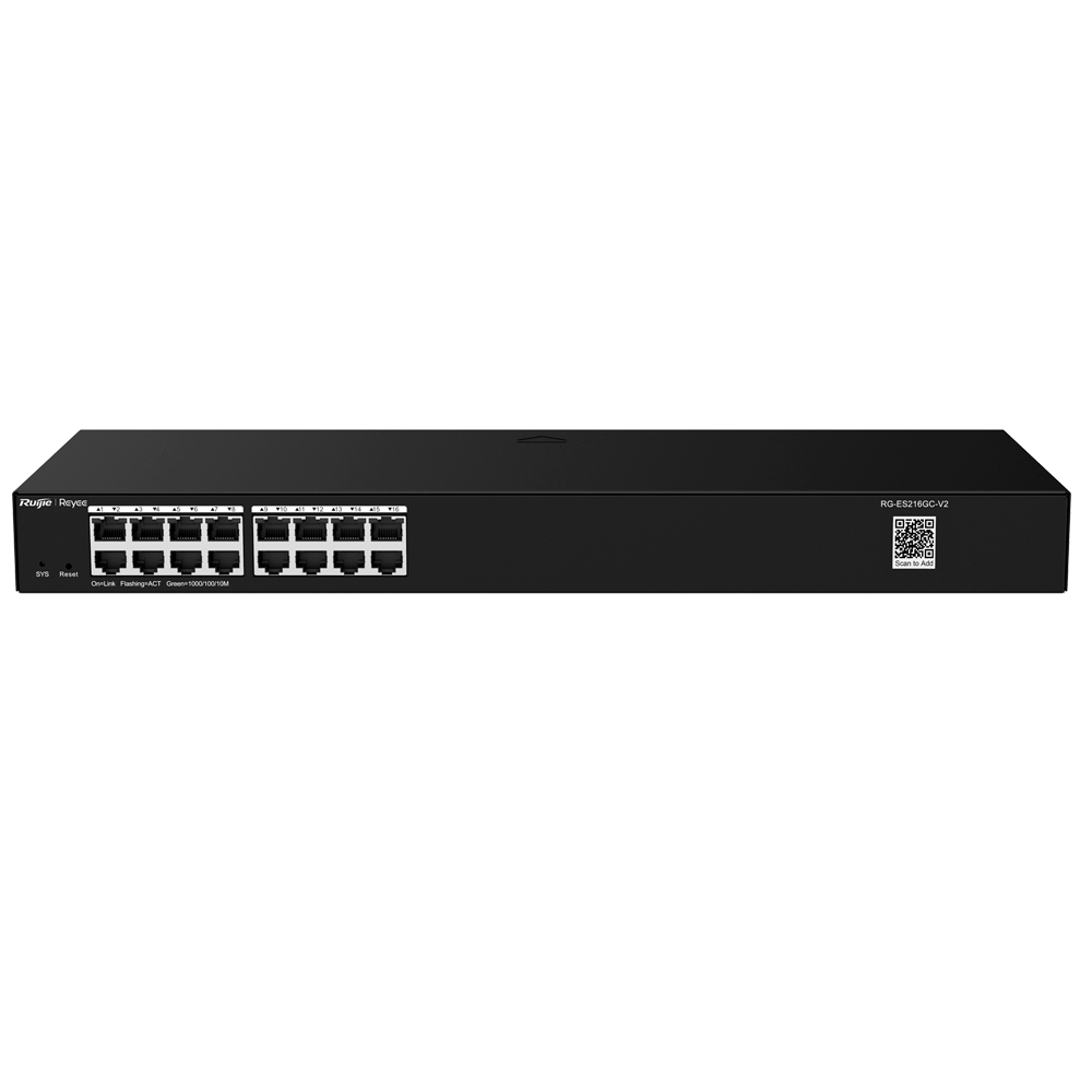 Reyee Switch Cloud – 16 puertos RJ45 Gigabit – Velocidad de puertos 10/100/1000 Mbps – Plug & Play – VLAN/Port Isolation/Loop Detection – Port Speed Limit