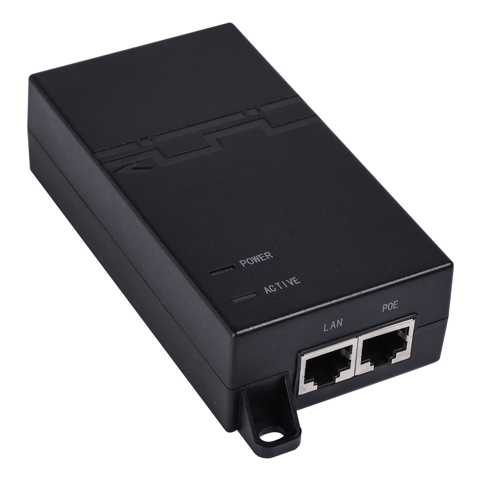 Inyector PoE – Entrada/Salida RJ45 10/100/1000 Mbps – Potencia 30 W – Distancia máxima 100 m – PoE/PoE+ IEEE802.3af/at – Estabilizado y protegido