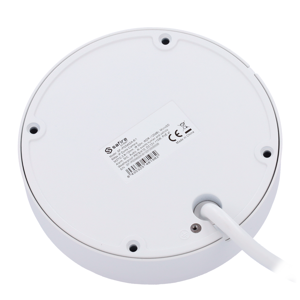Safire Smart – Cámara Dome IP gama I1 AI Avanzado – Resolución 6 Megapíxel (3296×1856) – Lente Motorizada 2.8-12 mm | Micrófono | IR 50m – AI Avanzado:Humano, vehículo y vehículo 2 ruedas – Impermeabilidad IP67 | PoE (IEEE802.3af) |Alarma