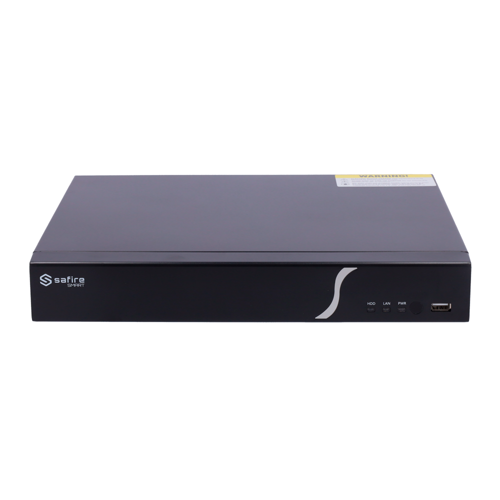 Safire Smart – Grabador NVR para cámaras IP – 16CH Puertos PoE / Compresión H.265S / 2HDD – Resolución hasta 8Mpx / Ancho de banda 160Mbps – Detección facial, Metadatos de vídeo – Inteligencia artificial hasta en 2CH