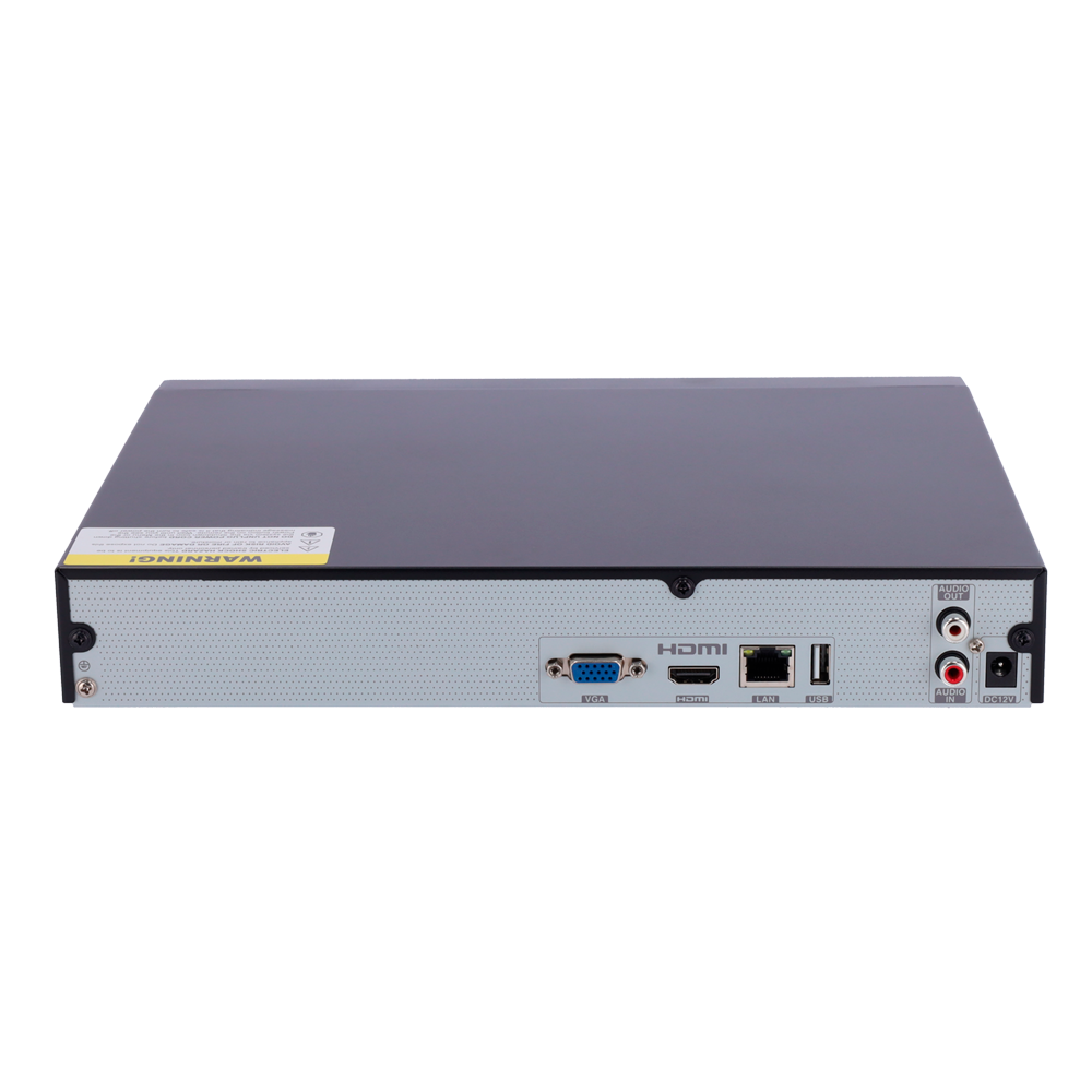 Grabador NVR – 16 canales – Compresión H.265 / H.264 – Resolución hasta 4K (25/30 FPS) – Ancho de banda 100Mbps – Espacio para 1HDD de hasta 16 TB