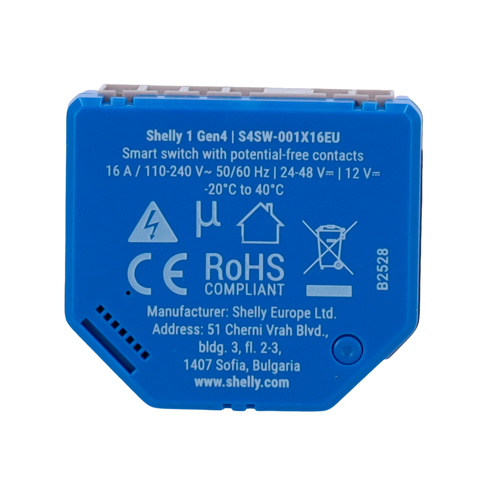 Shelly 1 Gen4 – WiFi 2.4 GHz / Bluetooth / Zigbee – Interruptor inteligente – Soporta 110-240 V~24-48 V⎓12 V⎓ – Ofrece contactos secos – Compatible con Alexa y Google